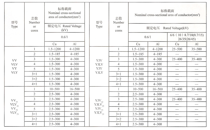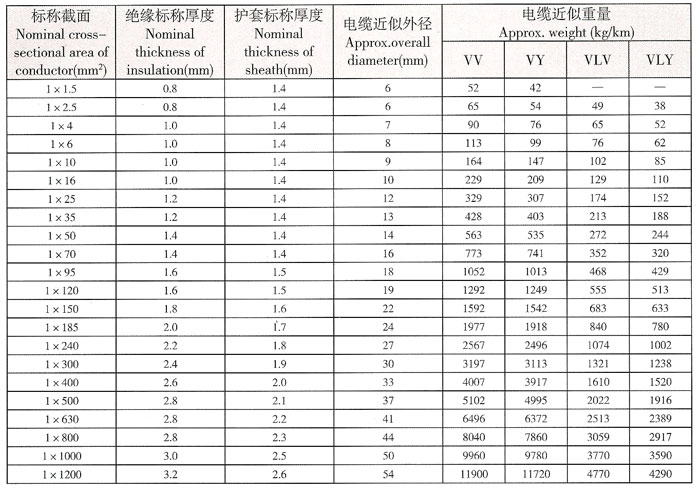 0.6/1kv聚氯乙烯絕緣電力電纜結(jié)構(gòu)尺寸及允許連續(xù)載流量