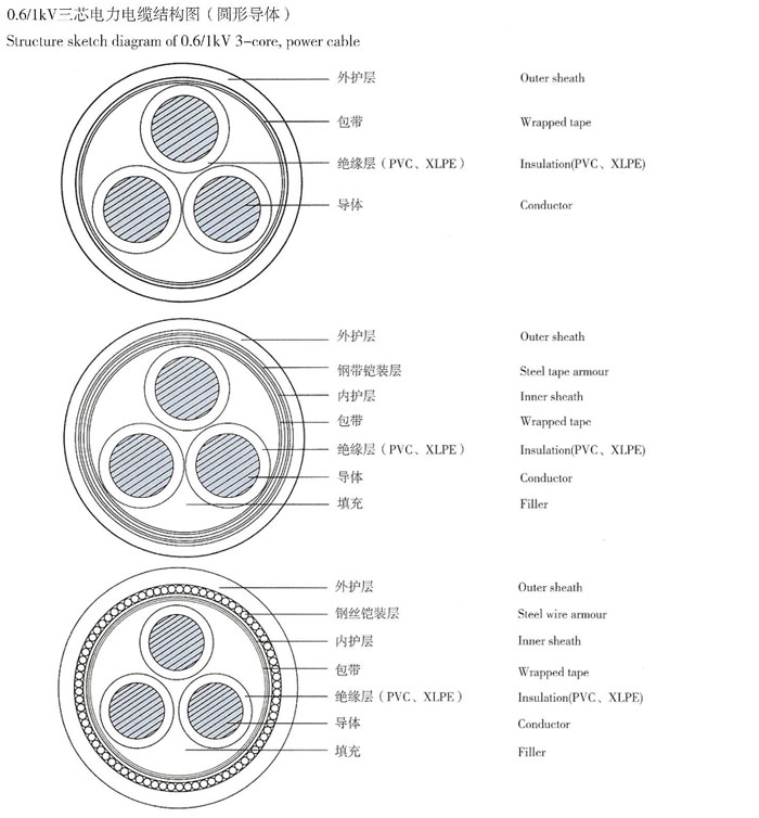 阻燃及耐火電力電纜結(jié)構(gòu)尺寸