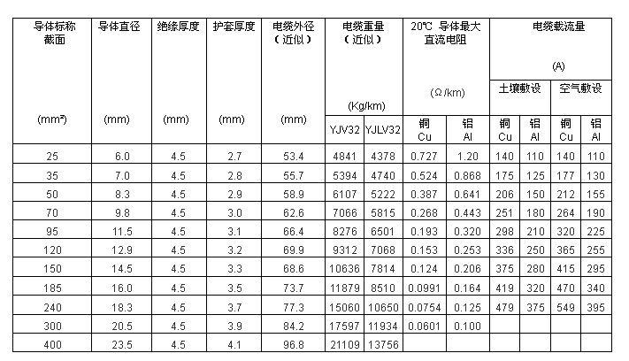 26/35kV 三芯交聯(lián)聚乙烯絕緣細鋼絲鎧裝聚氯乙烯護套電力電纜(YJV32,YJLV32)