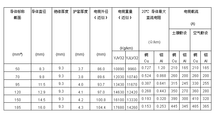 6/6kV, 6/10kV 單芯交聯(lián)聚乙烯絕緣細鋼絲鎧裝聚氯乙烯護套電力電纜(YJV32,YJLV32)
