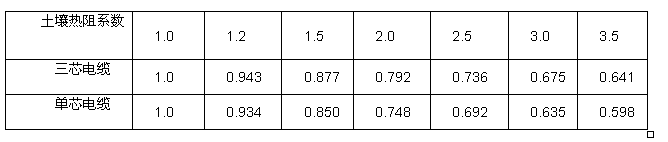 不同土壤熱阻系數(shù)的載流量修正系數(shù)