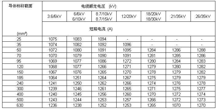 短路時(最長時間不超過5s)電纜導體的最高溫度不超過250℃。