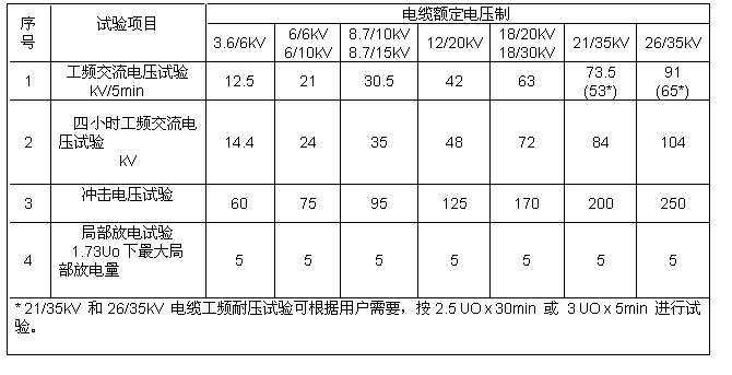 工頻額定電壓Uo/U為3.6/6kV~26/35kV。